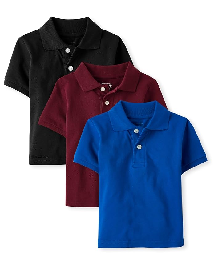 The Children's Place Baby Boy's and Toddler Multipack Short Sleeve Pique Polos, Redwood/Renew Blue/Black 3-Pack