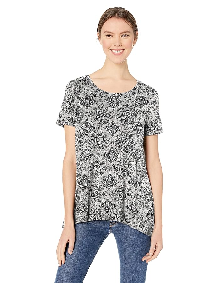 Amazon Essentials Women's Relaxed-Fit Short-Sleeve Scoopneck Swing T-shirt (Available in Plus Size), Grey Heather Tile Pattern, Medium