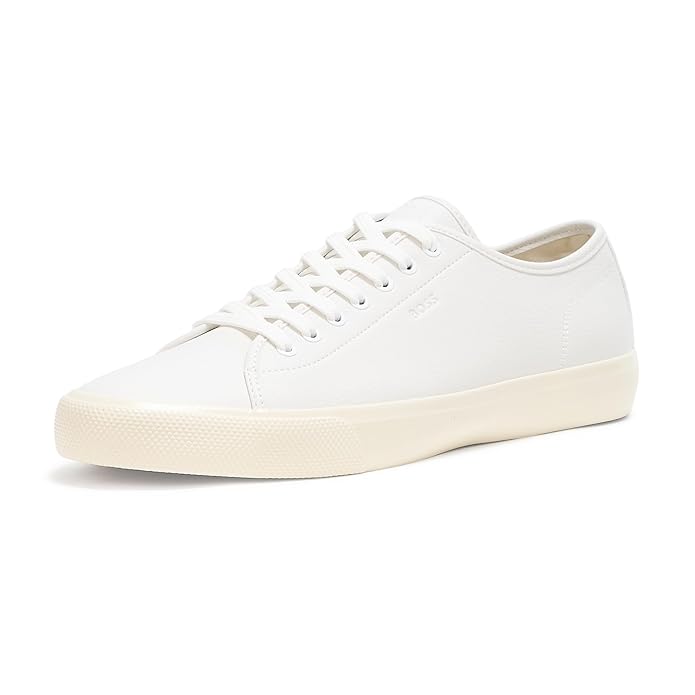 BOSS, Aiden Logo Block Leather Low Top Sneaker, Milk, 12