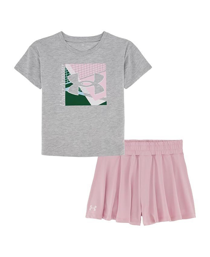 Under Armour Girls' 2-piece Short Sleeve Tee and Skort Set, Lightweight and Comfortable, Mod Gray Flare, 4