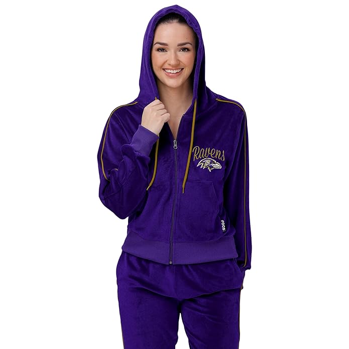FOCO Baltimore Ravens NFL Womens Velour Zip Up Jacket Top - S