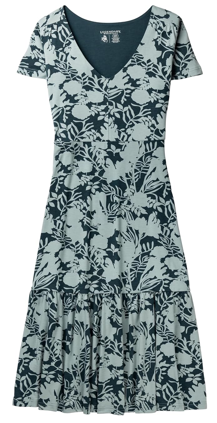 Legendary Whitetails Women's Printed Knit Midi Short Sleeve Dress, Teal Floral Silhouette Print, X-Large