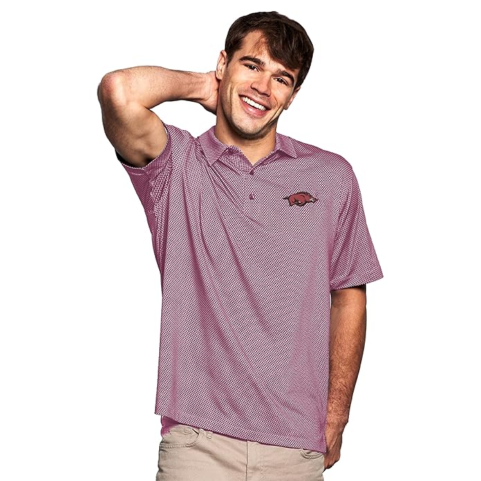 Vantage Apparel Men's Collegiate Premium Moisture Wicking Stretch Fit Diamond Print Polo, Arkansas Razorbacks, Maroon, 4X-Large