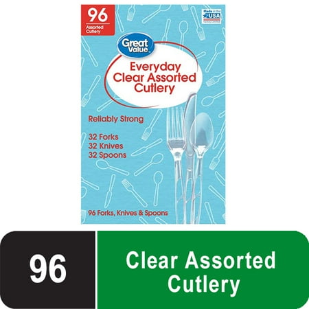Great Value Plastic Everyday Clear Assorted Cutlery, 96 Count includes 32F/32S/32K