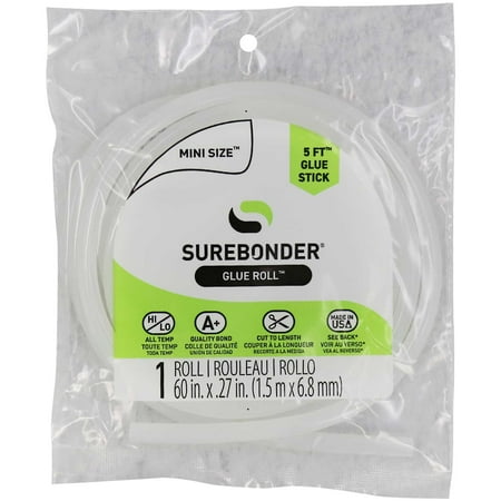 Surebonder Mini Hot Glue Stick Roll, 60" (5 Feet), 5/16" Diameter - Long Glue Stick, Uninterrupted Gluing, All Purpose for Crafting and DIY, Clear