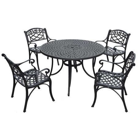 Crosley Furniture Sedona 46" Round 5 Piece Aluminum Patio Dining Set in Black