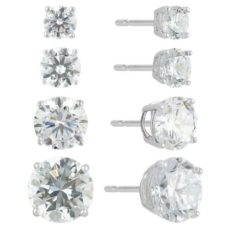 Brilliance Fine Jewelry Women's Simulated Diamond 4 Pair Round Earrings in Sterling Silver