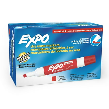 EXPO Low Odor Dry Erase Chisel Tip Markers, Red, 12 Count