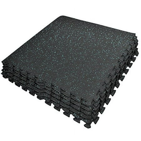 GGI INTERNATIONAL Puzzle Exercise Mat High Density Rubber Interlocking Gym Tiles (Blue Dots) - Black/Blue