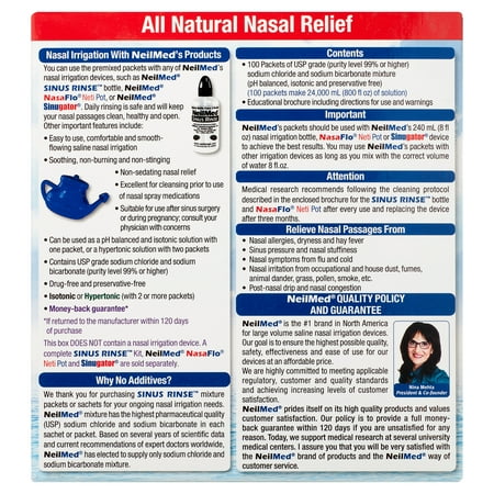 NeilMed Sinus Rinse Packets, Natural Relief for Nasal Irrigators, 50 Count, 10 mg