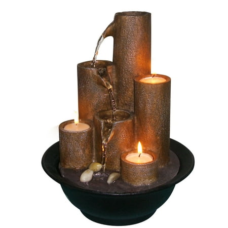 Alpine Corporation 11" Tiered Column Tabletop Fountain With Three Candles - Multi Color