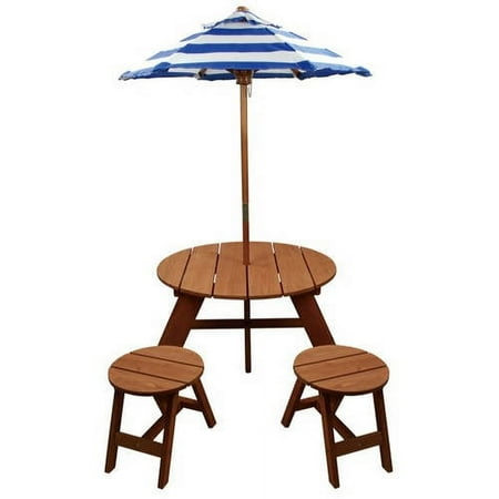 Homeware Children's Brown Wood Round Table with Umbrella and 2 Chairs