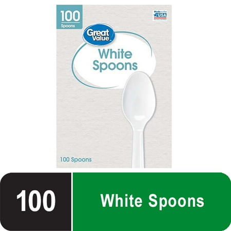 Great Value Everyday Disposable Plastic Spoons, White, 100 Count