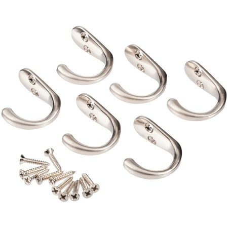 Mainstays, Single Satin Nickel Hooks, 6 Pack, Mounting Hardware Included, 10 lb Working Limit