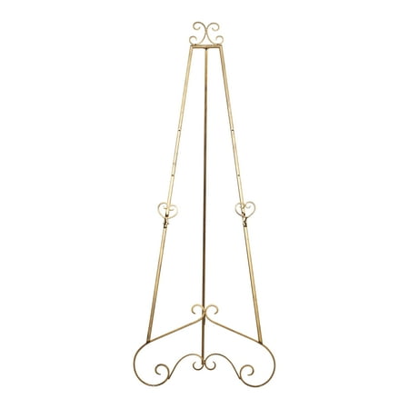 DecMode 23" x 68" Gold Metal Extra Large Adjustable 3 Tier Scroll Easel with Chain Support, 1-Piece