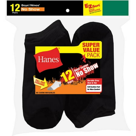 Hanes Boys' 12pk Cushioned No Show Athletic Socks - Black S