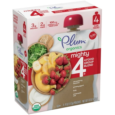 Plum Organics Toddler Food Mighty 4 - Strawberry Banana Greek Yogurt Kale Amaranth Oat - 4oz/4ct