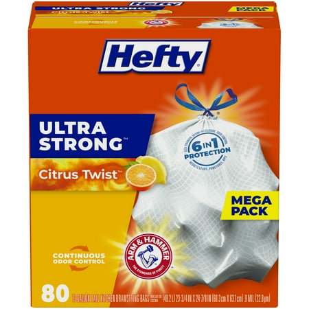 Hefty Ultra Strong Scented Tall White Kitchen Bags, 13 gal, 0.9 mil, 23.75" x 24.88", White, 80/Box Model No E88354
