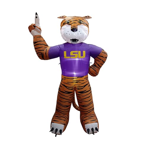 Logo Brands NCAA LSU Tigers 7ft Inflatable Yard Mascot – Easy Inflation with 12V Blower, LED Lights for Indoor/Outdoor Fun