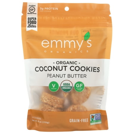 Emmy's Organics Peanut Butter Coconut Cookies - Case of 8/6 oz