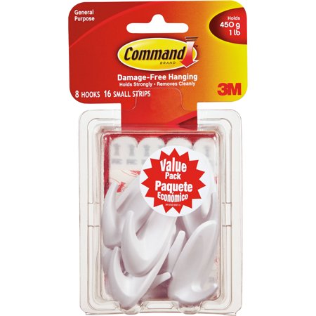 Command Designer Hooks, White Finish Value Pack, 8 Small Wall Hooks