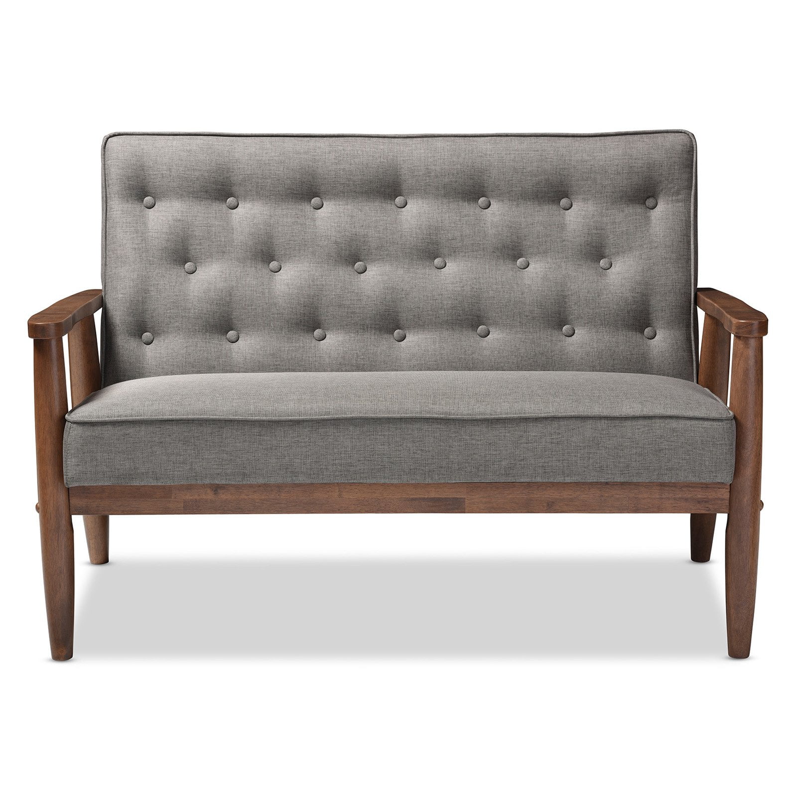 Sorrento Mid-Century Retro Modern Fabric Upholstered Wooden 2 Seater Loveseat Gray - Baxton Studio: Danish Design, Rubberwood Frame