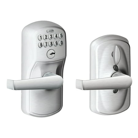 Schlage FE595CSVELA626 Satin Chrome Keypad Lever With Plymouth Trim And Flair Lever With Flex Lock