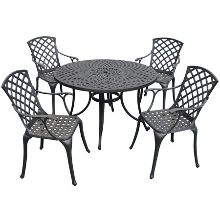 Crosley Furniture Sedona 46" 5 Piece Aluminum Patio Dining Set in Black