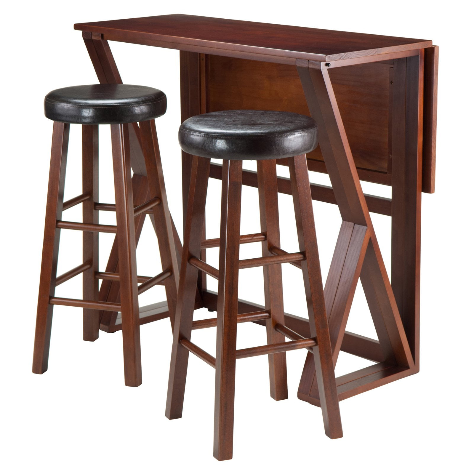 29" 3pc Harrington Drop Leaf Counter Height Extendable Dining Table Set with Cushion Seat Wood/Walnut/Black - Winsome
