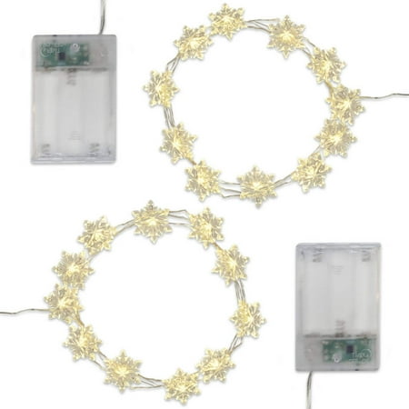 LumaBase Battery Operated LED Fairy String Lights with Snowflake - Set of 2