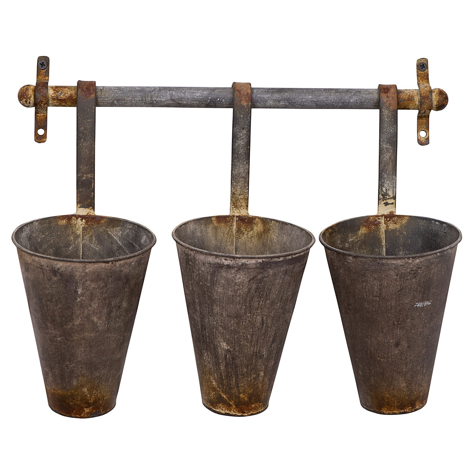 Metal Wall Rack with 3 Tin Pots - Storied Home: Rustic Outdoor Wall-Mounted Planter, Patio Clearance