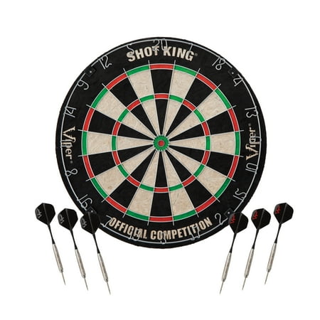Viper Shot King Regulation Bristle Steel Tip Dartboard Set with Staple-Free Bullseye, Galvanized Metal Spider Wire; High-Grade Compressed Sisal with Rotating Number Ring, Includes 6 Darts
