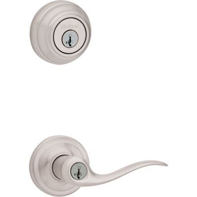 Kwikset 991 Tustin Keyed Door Lever and Sgl Cyl Deadbolt Combo Pack in SN