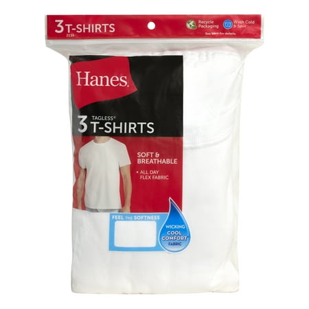 Hanes Men's White Crew T-Shirt Undershirts, 3 Pack