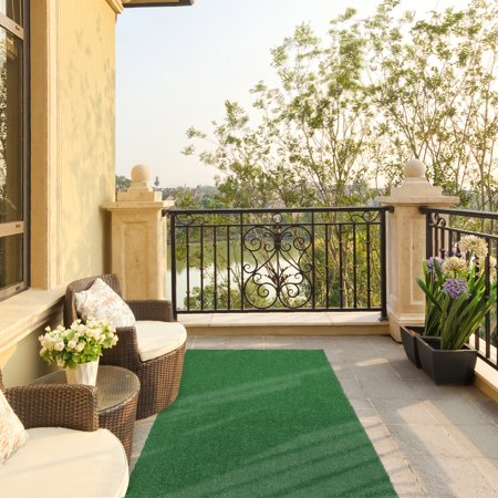Ottomanson Waterproof 4x6 Indoor/Outdoor Artificial Grass Rug for Patio Pet Deck, 3'11" x 6'7", Green