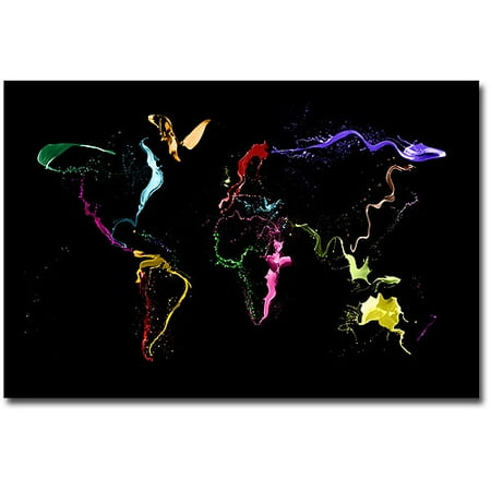 Trademark Art "World Map - Thrown Paint" Canvas Wall Art by Michael Tompsett