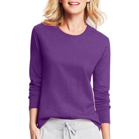 Hanes Long Sleeve Cotton T-Shirt, Lightweight Crewneck Tee for Women, Modern Fit, Ebony, Medium