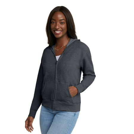Hanes Women's EcoSmart Full-Zip Hoodie Sweatshirt, Slate Heather, Large