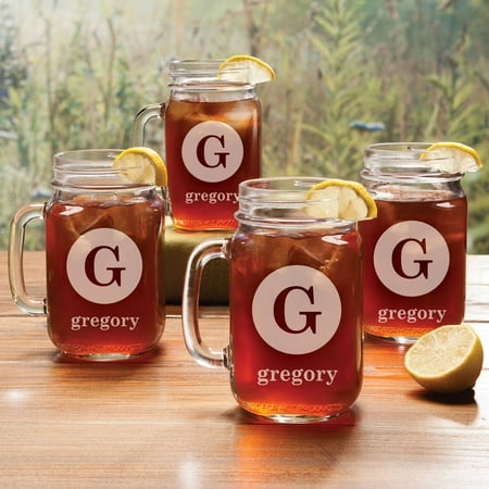Personalized Name And Inital Set of 4 Mason Jar Glasses