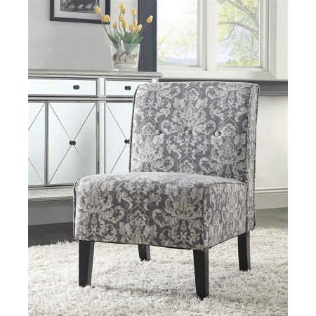 Coco Traditional Slipper Accent Chair Damask Gray - Linon: Upholstered, Tufted, Hardwood Frame