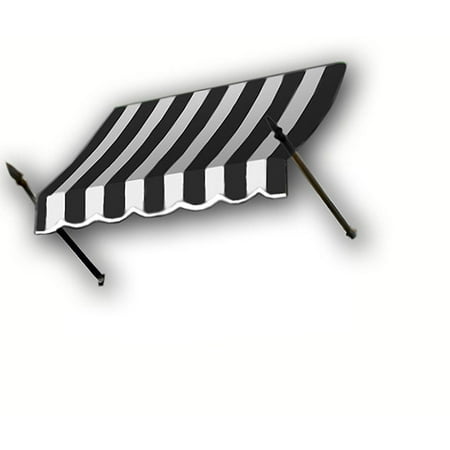 Awntech 6.38 Ft New Orleans Fixed Awning Canopy with Spear Arms (76.5in x 24in x 16in), Black/White Stripe