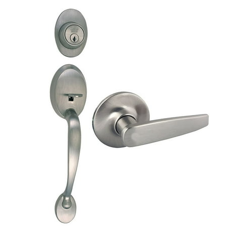 Design House 702068 Coventry Handleset with Delavan Interior Lever and Single Cylinder Deadbolt Satin Nickel