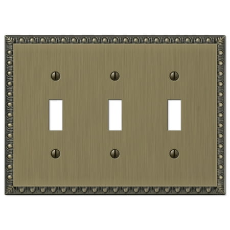 Amerelle 90TTTBB Egg & Dart Wallplate, 3 Toggle, Cast Metal, Brushed Brass, 1-Pack
