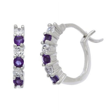 Brilliance Fine Jewelry Amethyst and Cubic Zirconia Earrings, 1.5 ct. t.w. Sterling Silver, 0.62''