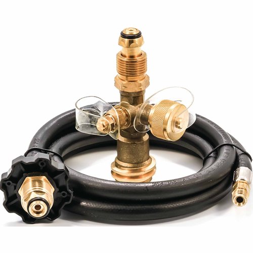 Camco Camper/RV 4-Port Propane Tee | Features 5-Foot Hose with Excess Flow Soft Nose POL & 1/4" Inverted Male Flare (59125)