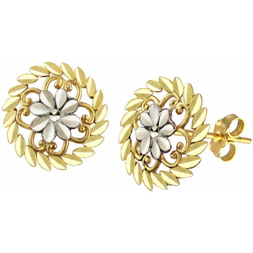 US GOLD 10kt Gold Diamond-Cut Flower Stud Earrings