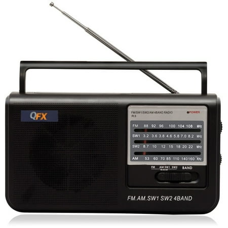 QFX Portable 4-Band AM/FM/SW1/SW2 Radio with Headphone Output, Black, R-3