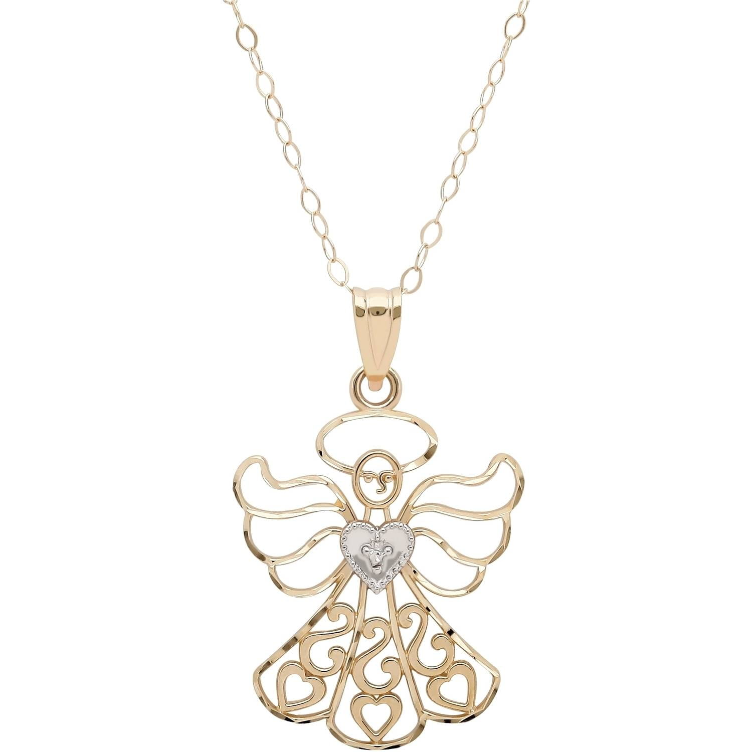 Brilliance Fine Jewelry 10K Yellow Gold Filigree Angel with Rhodium Pendant,18"