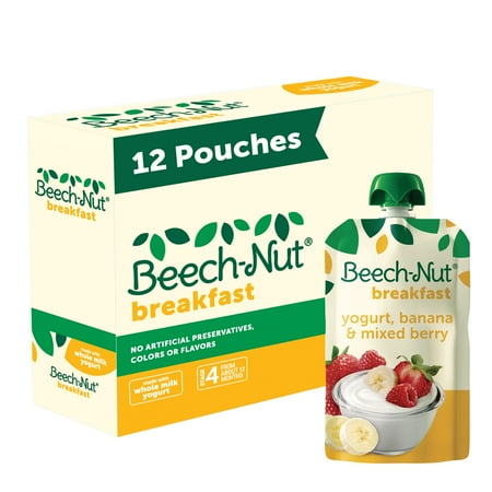 Beech-Nut Breakfast Stage 4 Toddler Food, Yogurt Banana & Berry, 3.5 oz (12 Pack)