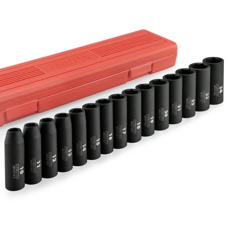 Neiko 02474A 1/2-Inch Drive Deep Impact Socket Set, 15-Piece Set